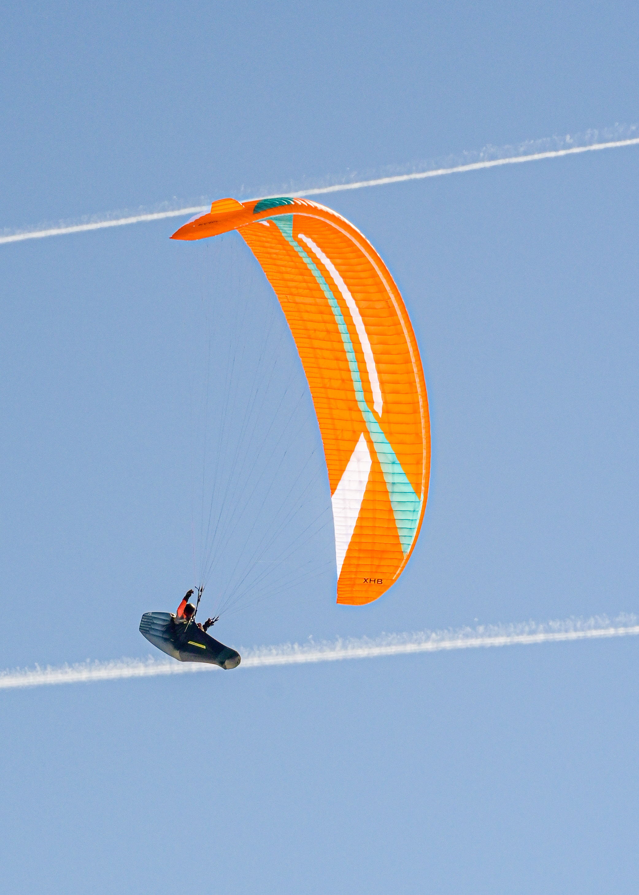 In thermals, the XHB reveals its unmatched strength. This agile wing bites eagerly into lift, provides the pilot with a great deal of feedback, and can be flown very efficiently thanks to its precisely controllable handling. Brake inputs are transmitted directly and accurately, with pleasantly low brake pressure in the working range that becomes clearly defined as control travel increases.